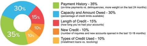 There are 5 factors that make up a credit score. A credit score range is usually anywhere from 300 to 850 based on the FICO score. Why is it important to understand these 5 factors? Simply put, you can maintain good credit just accomplishing 2 of these sectors which make up 65% of your credit score. We are going to cover this more in depth below. Let's begin.